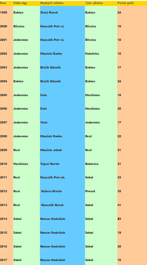 Historicky se oddíl účastnil různých turnajů a pořádal Obecní ligu malé kopané. Historická tabulka obecní ligy k náhledu ZDE.